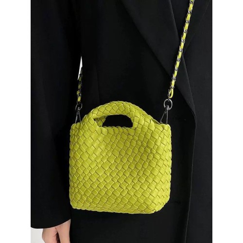 Yellow/ Green Woven Hobo Bag - Handwoven Leather Shoulder Bag